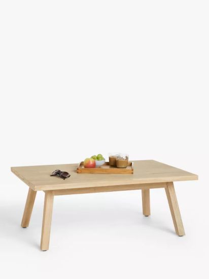 - Suitable for the garden or conservatory, our garden furniture is made from acacia wood and has been limed to protect it and bring out the beauty of the wood grain. The rectangular coffee table seats up to four people.