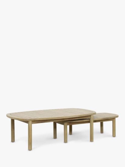 • Our furniture is made from durable, naturally weather-resistant FSC certified Acacia wood. This pair of oval coffee tables nest together for compact storage, with the smaller table sliding neatly underneath the larger one.
